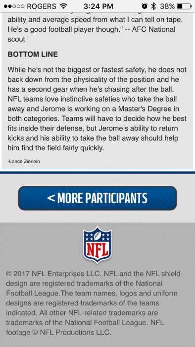 Needs to add a little more size to his frame. Can be outmuscled by size. Hand usage is inconsistent. Needs to improve in art of discarding blockers. Just average at punching and shedding to keep himself clean in take-on situations. Bad habit of ducking head into crunching tackles rather than seeing what he hits. Tightly wound with average change-of-direction talent. Can improve his path to perimeter to avoid traffic around him.