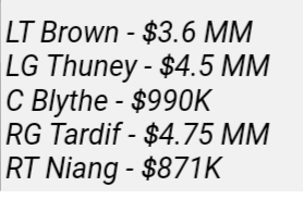 Something I saw today as well is the Chiefs OL. They have a real shot at being a top OL. If you look at the cap the entire unit cost under 10 million. Even Kyle Long's cap hit is like 1.5 million.