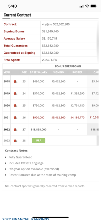 From what I read he still might get cut, which means he could sign anywhere for the vet min and still get the bulk of his $19M from Cleveland. Same thing Bortles did. He was still getting $5-6M from Jax while the Rams were only paying him $1M.