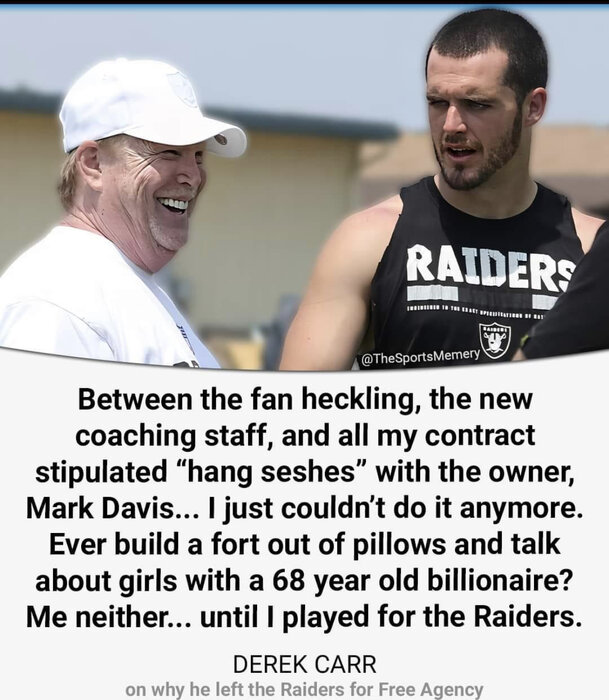 Never did like Carr. Don't care for Davis either but as a QB who used to play for the dude I would think maybe refrain from shitting on the owner you played for. It's like making fun of the retarded kid, when you know him from personal association of some kind.