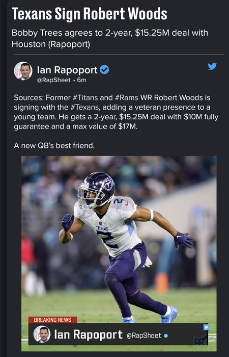 Little Brandin Cooks/Robert Woods reunion here in Houston. Assuming the former doesn't get traded.