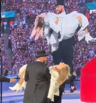 Kelce is in Swifts very big world. At some point that likely gets to him.This was his idea! How about she come to your work, put on some pads and throw you a pass?