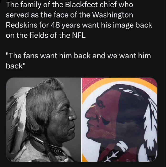 Blackfeet are from Montana. Would be better to ask the Pamunkey and Rappahannock Tribes what team name would honor their people. They’ll probably ask for a new logo also since it doesn’t recognize their Tribes.