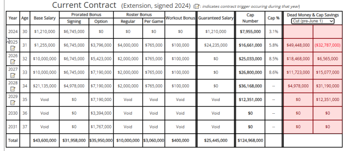 Just wanted to point out how a big contract has huge negative cap implications when a team moves on from the player shortly after (one-to-two years) making the deal.