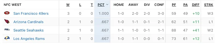 I still look at the coaching, QB’s and defenses. SF will be our competition.
