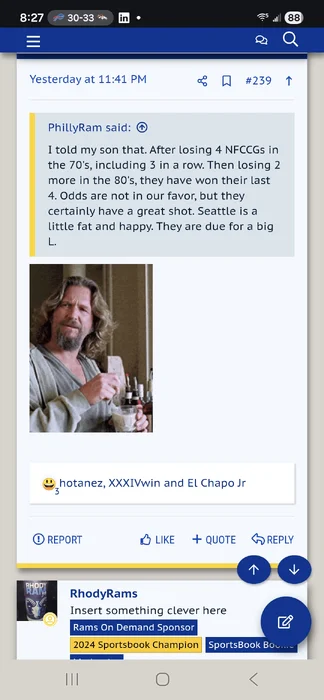 Yeah, that was really clear from your post.Talking about 4 straight NFCCG wins. Umm... try to keep up.