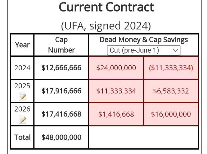 If accurate, it has a fairly-high 2024 cap hit of $12.7M.
