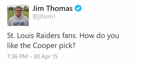 I think the Rams are letting the draft fall to them... If a player they love gets close, they might trade. Otherwise, I suspect we trade down if someone makes an offer.