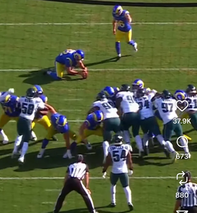 The officiating crew for the Eagles vs. Rams game immediately missed a penalty on Philadelphia's first Tush Push play of the game. This should have been a false start, but the refs didn't call it.