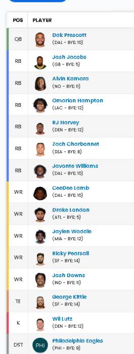 Just wanted to double check that you got my draft info.Right, message me any players to target or draft strategies like stream QB, or No RB draft strats. I'll do my best. I'm sure it will be better than auto draft.