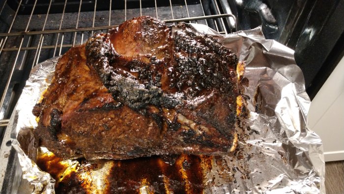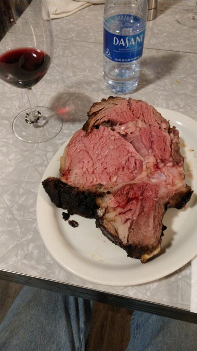 Sous Vide true Prime Rib. 134° for 6 hours then broiled on all sides to carmelize the Hog Wired Rub on the outside. Ridiculousness.