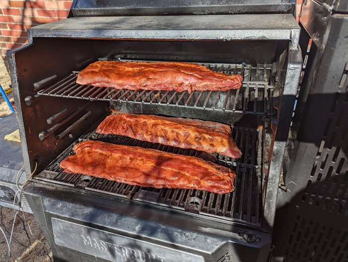 Smoking some ribs today for a going away party. Thought I'd post a few pics during the process.