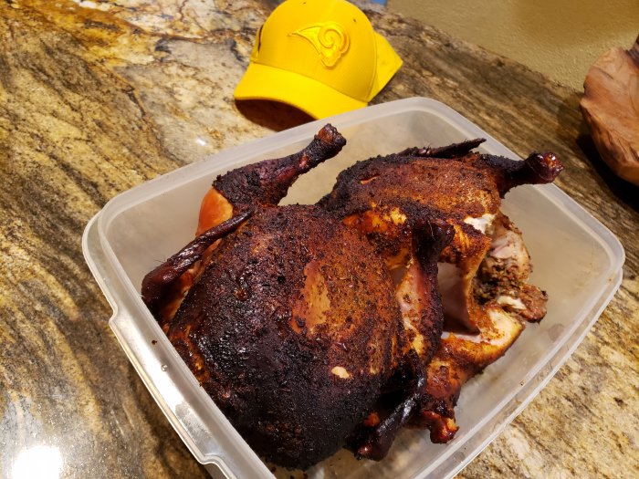 Here's a shot of the 2 yard birds that I smoked. This was them right off the smoker. I put both of these in the soup.