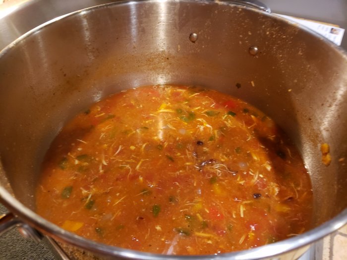 Here's a shot of the soup cooking up in the pot after all the ingredients were added. Lots of good flavs going on in here.