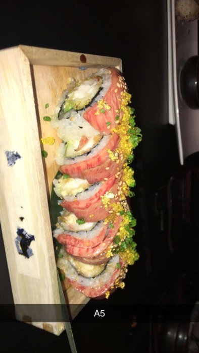 They named it the Gold Digger roll. It had Wagyu Beef (A5 Grade), tempura lobster tail, actual gold flakes, and other stuff I don't remember.