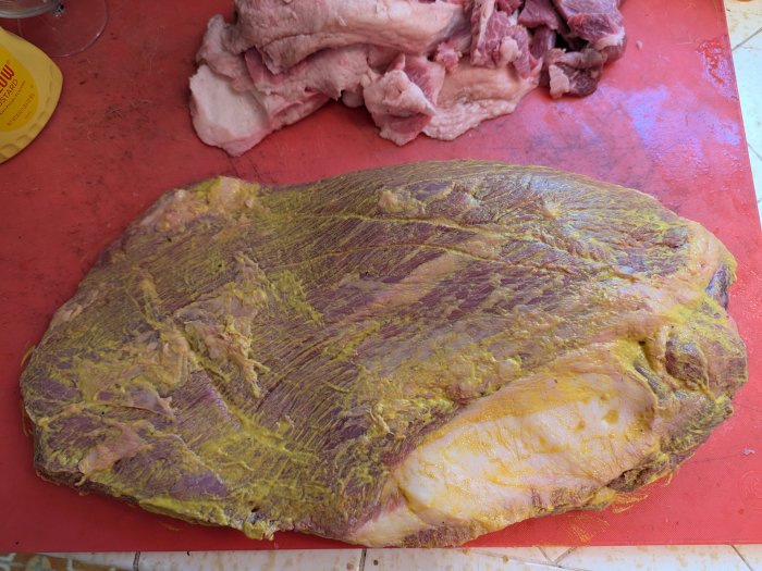 Roughly 15lbs before trimming and smoking. Ending weight was about 7 lbs.Looks delish Stu. How many pounds did that weigh prior to cooking?