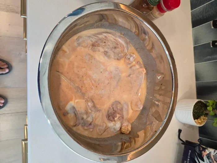 I made some bomb ass fried chicken and greens a few weeks back. Soaked the chicken in buttermilk and hot sauce for 12 hrs, then battered and air fried it....i may have posted pics in the GDMT for that week, but here they are again.
