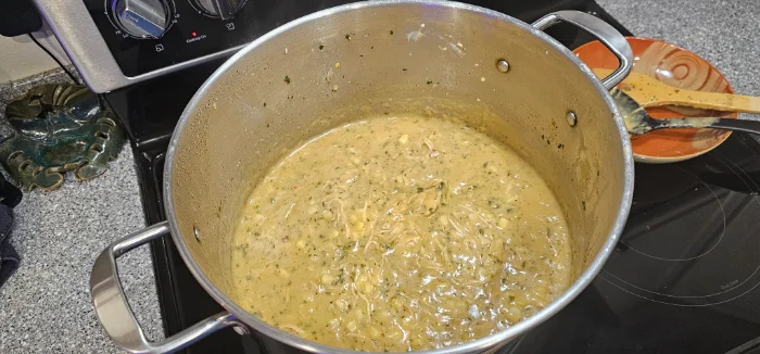 I made Mexican Street Corn Chicken chili soup for the game yesterday. I top it with bacon crumbles, cotija cheese, fresh slices of avocado, and some spicy pepper slices. My wife adds some cron tortilla strips as well. So so good...