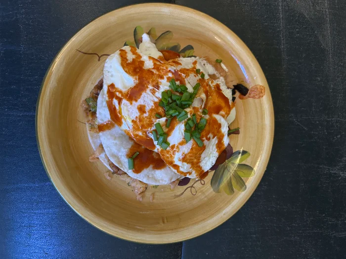 2 eggs on top of anything automatically makes it a breakfast dish.