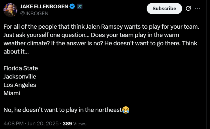 Well that’s utterly false, so either you haven’t read anything I’ve posted or are just trying to be argumentative.Well my friend let me be brutally honest. Whenever the topic of how much Ramsey would cost a team trading for him, you seem to emphasize the $1.255m salary he would be due as if that is all a team would be saddled with. So I’m going with a $20m 2025 price tag unless the Fins eat s good chunk of that $19m bonus.