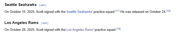 Then we have the .01% left over from my 99.99% of the time comment in Mr Tyler Scott WR. He wasn't released by us but.....