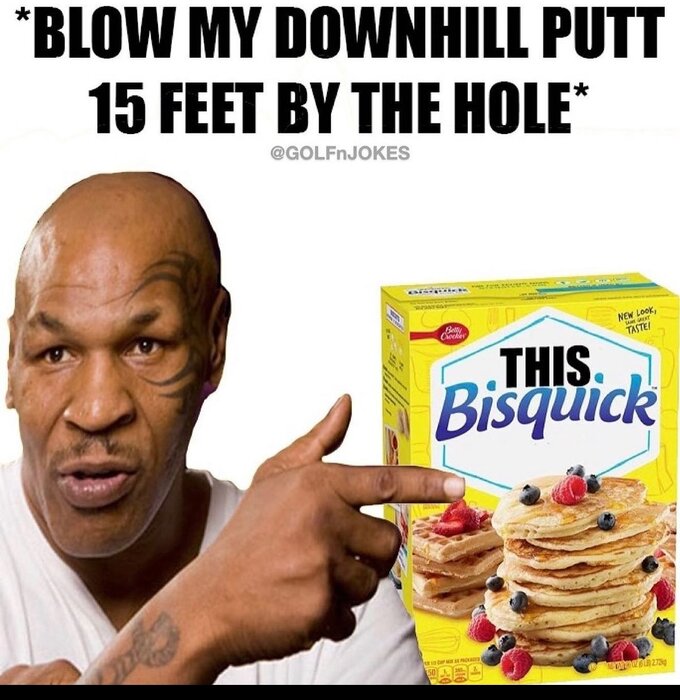 When a green is rolling fast, or you just hammer your putt, us hackers will say something to the effect of "this bitch is quick" about the putting surface.....so... It's a play on Tysons lisp, naturally. Not the funniest of memes, but it was in my recent snapshots, so I threw it in.