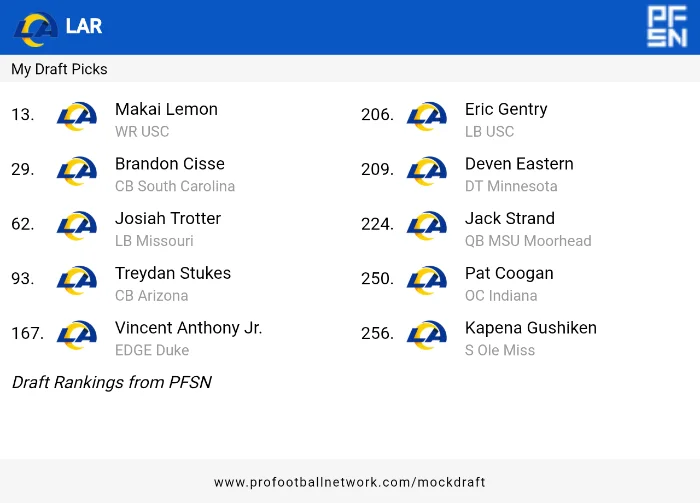 I just hope the Rams don't get too overconfident in any position group, like they did last year, and traded away several picks to "move up" to get players who didn't make the team.