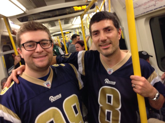 Damn this is making me miss London! My friend and I and stayed with my uncle for 2 weeks. Trip of a lifetime!! We were able to see a Man. United vs Chelsea match, and the Rams game. The rally the day before the game was amazing. I got to meet and get autographs from Marshall Faulk and Jackie Slater! Then the first pass of the game is a td for us! Things couldn't get any better and then we get completely beat down... So I just had a ton of pints and had a blast taking to everyone around. There were fans of just about every team who were there just for the sake of being at a live nfl game.