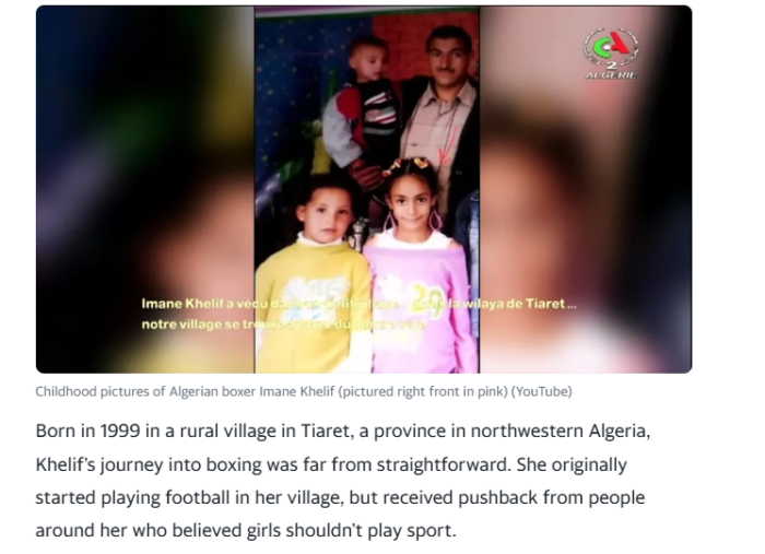 Yes. And you're telling me that a country, in a region, where men have much more power than women, where trans and homosexuality are illegal, that Algeria made the one and only exception for this woman to switch genders? When she was born and had no idea that competitive sports were a pipe dream for women?