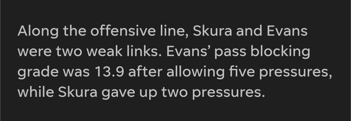 I think Evans average pass blocking grade for the year is under 15
