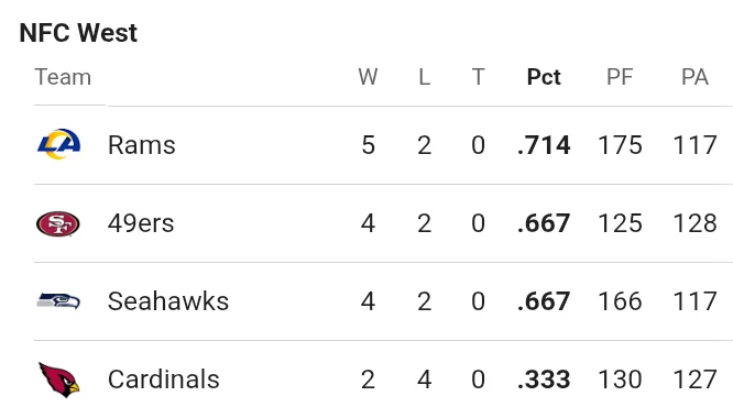 Lol i hate the uneven records. I usually like to look at that thing once all the games have played.Guess who's leading me NFC West?View attachment 72946