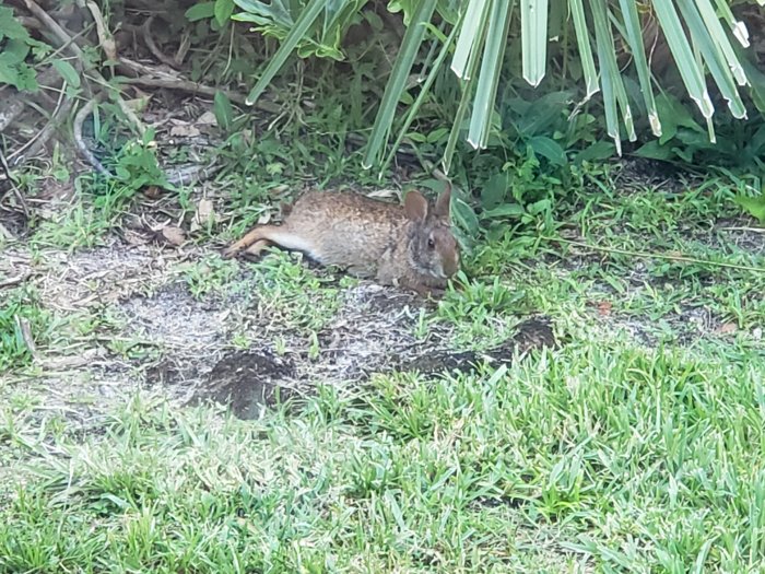I've got wild rabbits that live in my backyard. They are cool to watch. Normally I see them in the morning and in the evening right before it gets dark. They chomp down on my grass.