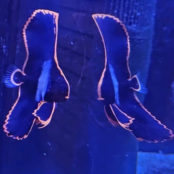 The juveniles have this amazing color as a defense mechanism. This colouration mimics a poisonous sea slug that lives in their local waters. No predators would dare to eat one. Amazing how nature works these tricks out.