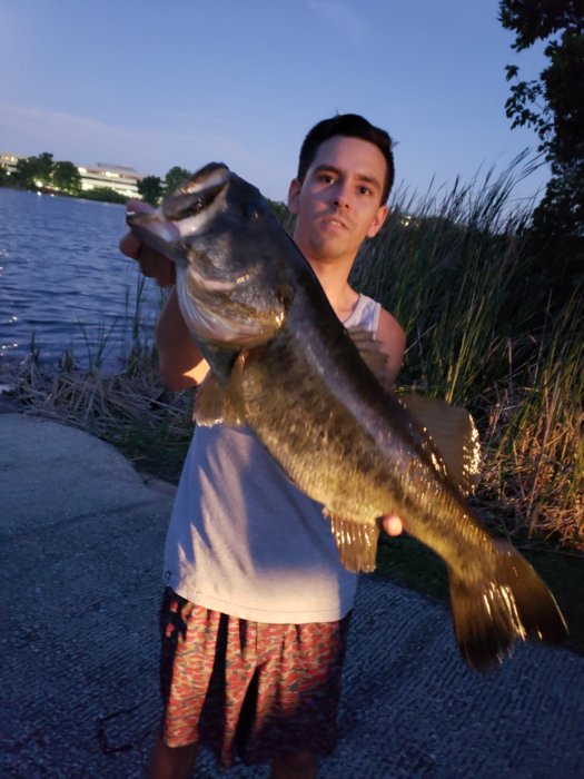 It's hugeMy son caught this beast last night. He didn't have a scale, but it measured 28" long. Spawning season is over here so it's belly wasn't bulging... but this is a very big bass.