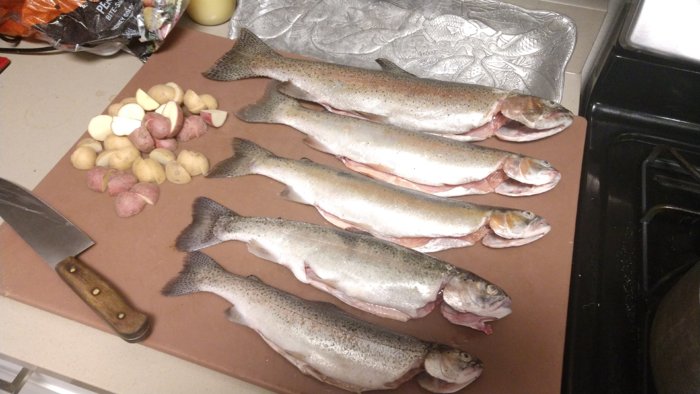 Frechmans is usually nice....I think the water level is still a little higher than recent years.My family is all together. Yesterday, we decided to do a little kayaking and fishing up at Frenchman's dam. Nice haul. My youngest caught the biggest 20" Rainbow and I caught the most. The smallest was 13" (one of mine).View attachment 46241View attachment 46242View attachment 46243 Pretty fine feast - fresh trout and crawdads.