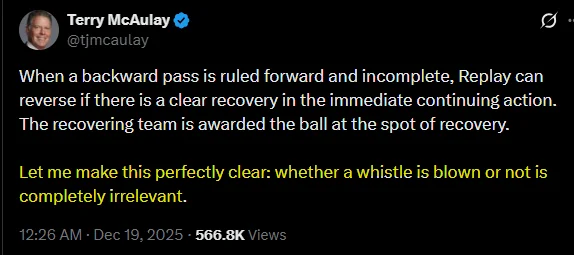 Later in the thread:So the whistle ends play. Except when it doesn't....