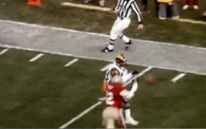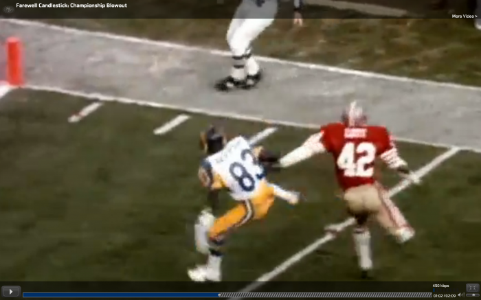 If anyone remembers Ronnie Lott knocking the ball away from Flipper - coming out of nowhere