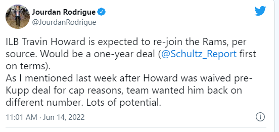 Overall, if Howard does not come back, I believe the Rams like Anthony Hines Texas A&M and Jake Hummel Iowa State at ILB too. Hines has the size at 6'3 226lbs and Hummel was a tackling machine at Iowa State. I still hope that Howard actually comes back at a lower salary, but I concur with @Memento I believe another team will come calling.