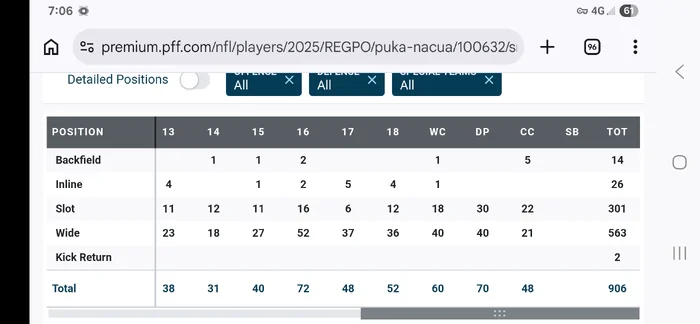 Again nothing against Lemon here. I'm a USC fan and well aware of his strengths. But I just don't think he's the best fit. And if I'm wrong on how much Puka was in the slot last year, no problem. But this is all based on the fact I think Puka's going to be in the slot primarily in 2026.