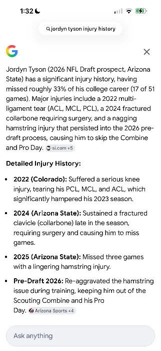 I agree with this but... Detroit took a chance on Jameson Williams and look how well that's working out. The difference is that Williams had to take a year off because he was injured in his last year... Tyson has already recovered from his knee injury.