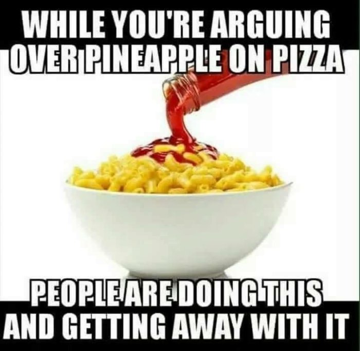 Look, even I, with all of my completely-lacking-in-Italian-blood, know that pineapple should be nowhere near a pizza. It's disgusting, un-American, and only a Pizza Nazi would say it's right."No cheese pizza for you!" ~ Pizza Nazi